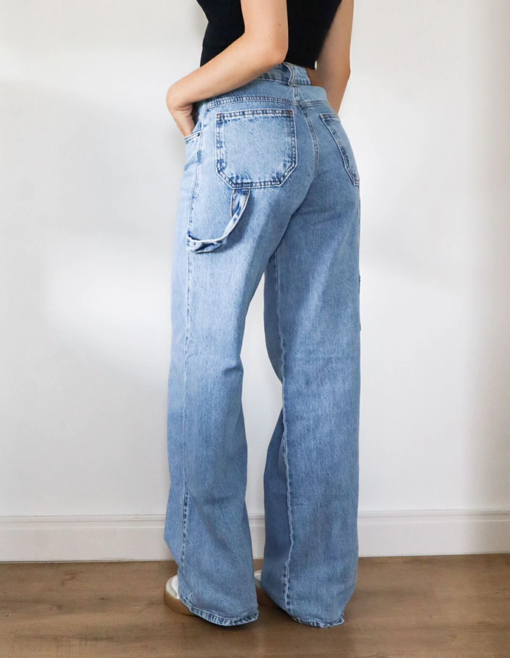Ela foi criada para ser utilitária, mas seus detalhes únicos e autênticos a fizeram virar moda. A calça carpenter é um modelo de calça inspirado em roupas de trabalho, caracterizada por um bolso grande na lateral da perna e uma alça para ferramentas em um dos lados. Originalmente feita de lona para trabalhadores, como carpinteiros, hoje é feita de materiais como jeans e sarja, com uma modelagem ampla e solta. No nosso caso, produzida em jeans 100% algodão. Essa será a calça mais legal do seu guarda-roupa!